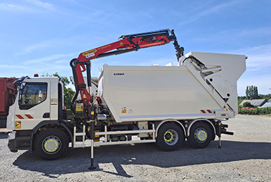 La benne WASTEPAC, combinée à une grue de manutention, est idéale pour la collecte des ordures ménagères. Sa conception limite l’usure tout en offrant une charge utile optimale, garantissant une longévité accrue et une maintenance réduite.